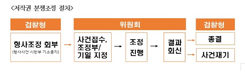 | ▲ 검찰연계조정제도 시행 시 저작권분쟁 조정 절차 [문화체육관광부 제공] |