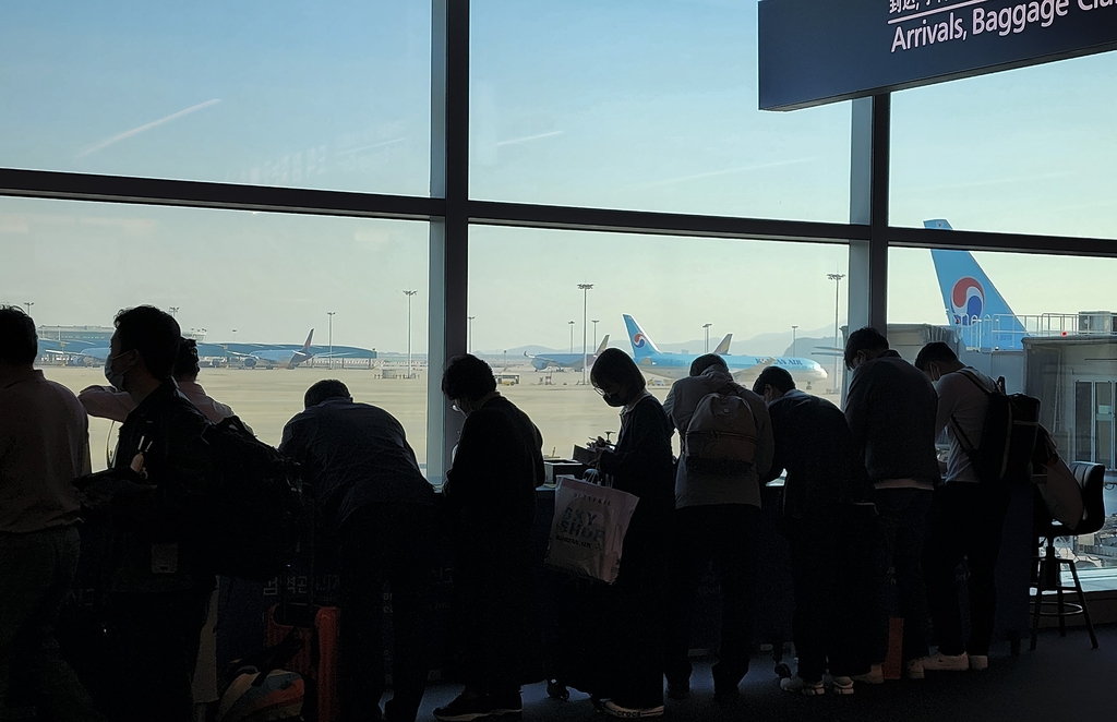 지난 20일 오후 인천공항 검역소 앞에서는 유럽 여행을 다녀온 승객들이 일제히 데스크 앞으로 몰려가 건강상태 질문서를 작성하는 진풍경이 펼쳐졌다.