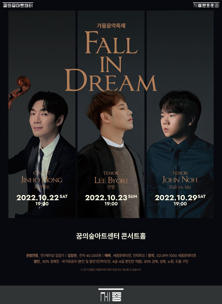 ▲ 세종문화회관 가을음악축제 '폴 인 드림' = 세종문화회관이 10월 22∼29일 서울 강북구 꿈의숲아트센터 콘서트홀에서 클래식 음악축제 '폴 인 드림'을 연다.