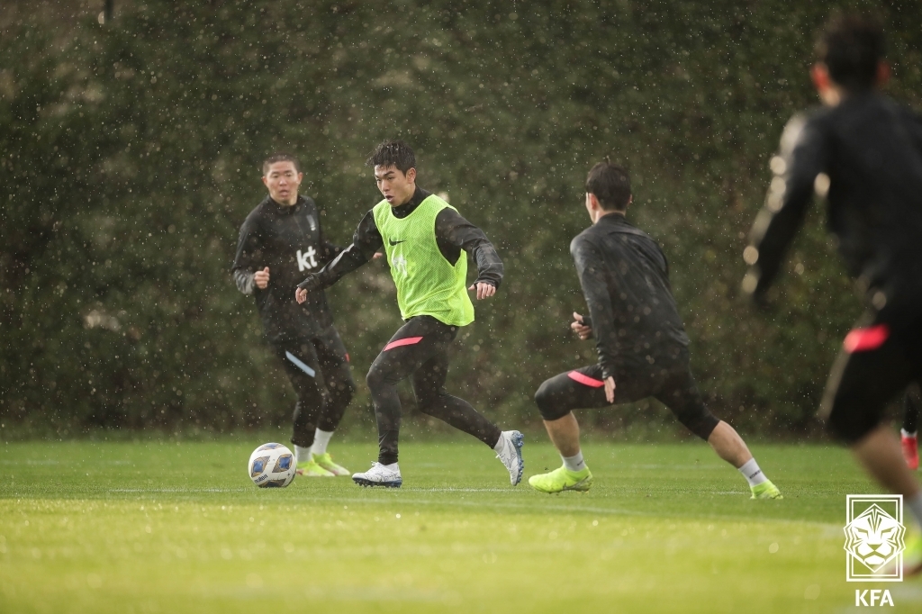 | ▲  Members of the South Korean men's national football team train at Cornelia Diamond Football Center in Antalya, Turkey, on Jan. 10, 2022, in this photo provided by the Korea Football Association. (PHOTO NOT FOR SALE) (Yonhap) |