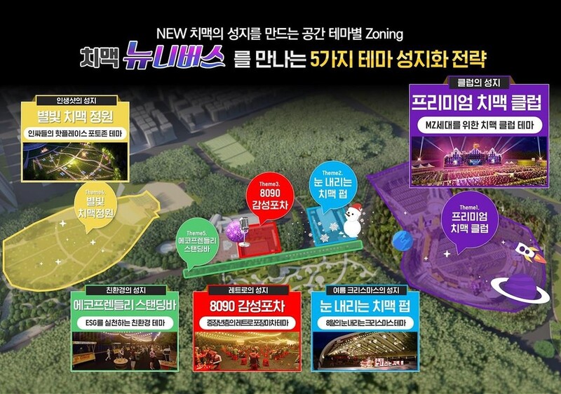 MZ세대를 겨냥한 프리미엄 치맥 클럽, 눈 내리는 치맥 펍, 8090 감성포차, 에코프렌들리 스탠딩바, 별빛 치맥 정원 등이 대표적이다.