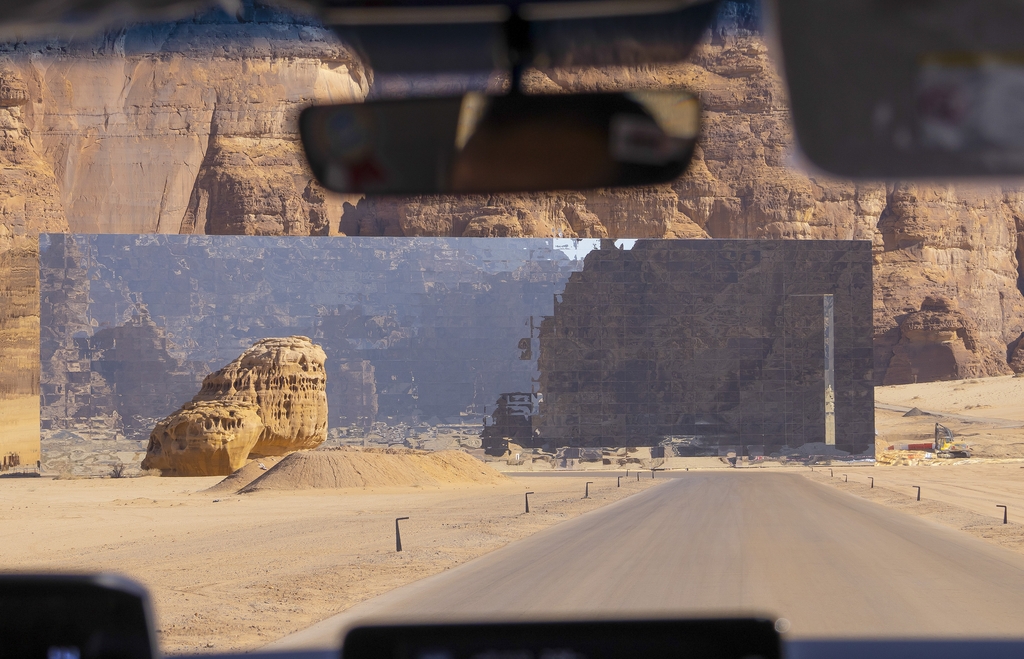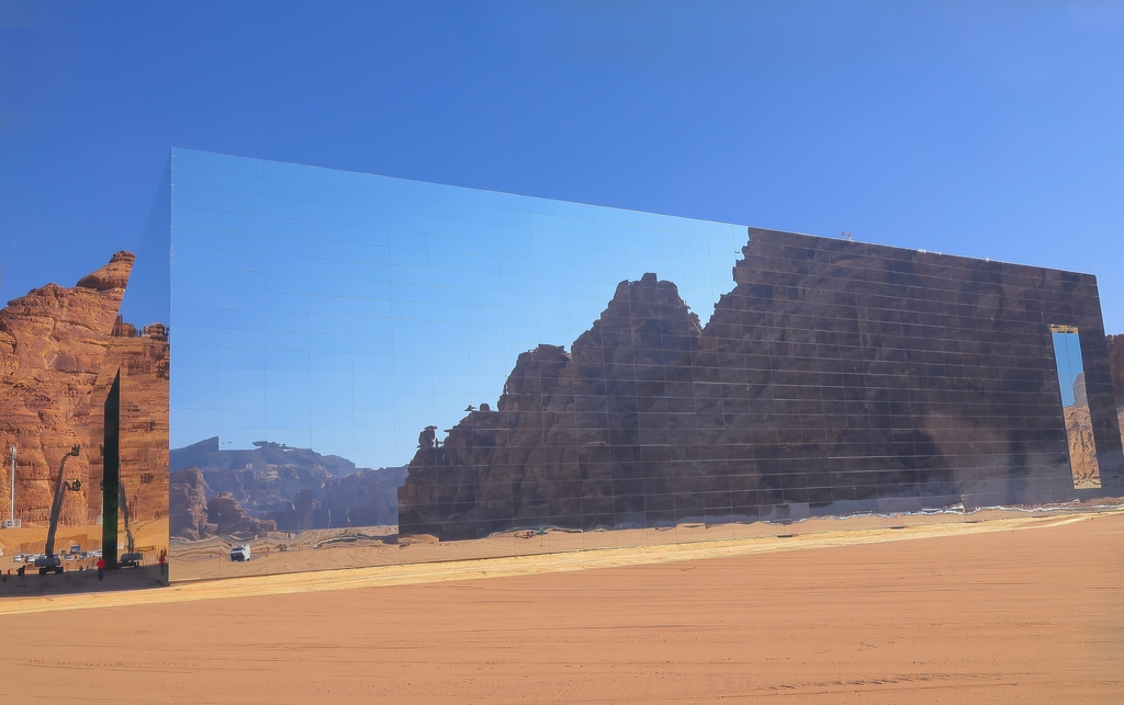 수도 리야드에서 1천100km 떨어진 알울라 지역의 사막 한가운데에서 기자가 발견한 것은 거대한 거울 같은 건물이었다.