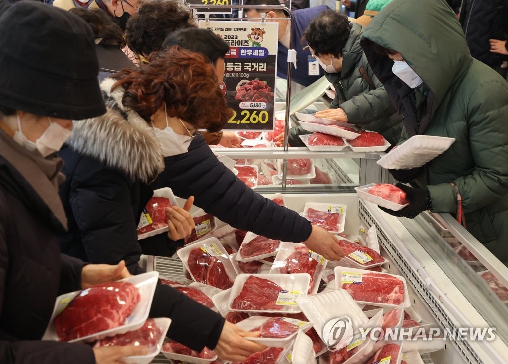 | ▲ People shop for groceries at a supermarket in Seoul on Feb. 15, 2023 (Yonhap) |