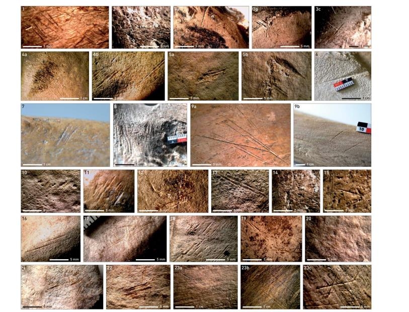 연구팀은 3천400여개에 달하는 뼈를 일일이 분석했으며 거의 모든 뼈에서 홈이나 긁힌 자국 등 석기를 이용한 전형적인 도살 흔적을 확인했다.