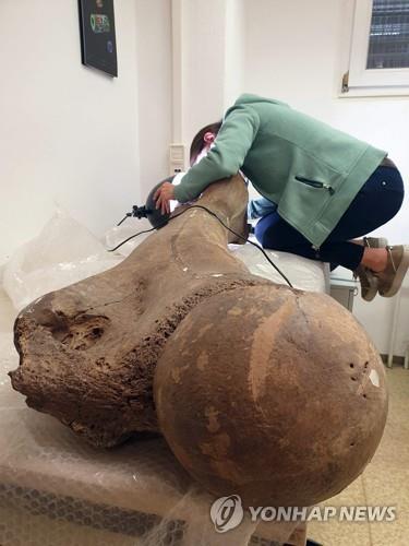 | ▲ 일직선상아 코끼리 대퇴골 [MONREPOS / Lutz Kindler 제공/ AFP 연합뉴스/ 재판매 및 DB 금지] photo@yna.co.kr |