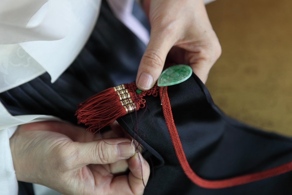 | ▲ 손바느질로 한복을 만들고 있는 모습 [문화재청 국가문화유산포털 제공. 재판매 및 DB 금지] |
