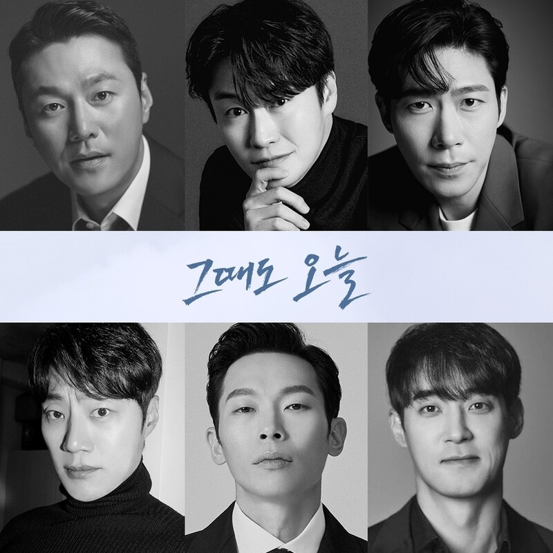 | ▲ 연극 '그때도 오늘' 출연진 왼쪽부터 최영준, 오의식, 박은석, 이희준(맨 왼쪽 아래), 양경원, 차용학 [공연배달서비스 간다 제공. 재판매 및 DB 금지] |