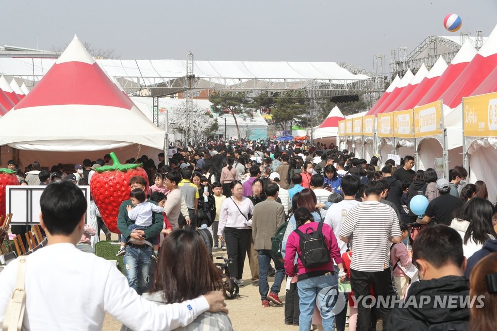 | ▲ 2023 논산딸기축제 지난해 3월 열린 논산딸기축제장을 찾은 방문객들.[촬영 이주형] |