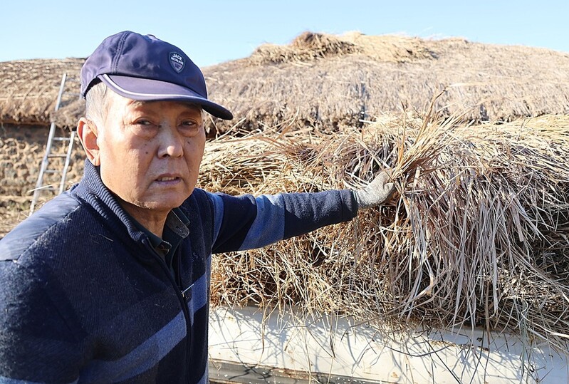 | ▲ 제주도 무형문화재 강임용 선생 (제주=연합뉴스) 변지철 기자 = 지난 1월 16일 제주성읍민속마을 초가지붕잇기 현장에서 제주무형문화재 제19호 초가장인 강임용(76) 선생이 연합뉴스와 인터뷰하고 있다. 2024.2.4 |