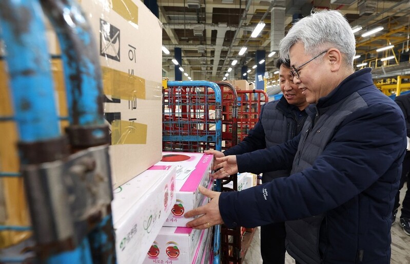 ▲ 조해근 우정사업본부장은 1일 대구 우편집중국을 방문해 설 명절 우편물 특별소통 비상근무 현장을 점검했다. 조 본부장은 "설 명절 국민들의 소중한 소포 우편물을 안전하게 정시에 배달할 수 있도록 최선을 다해달라"고 당부했다. 우정사업본부는 특별소통 기간(1월29일∼2월14일)에 평소보다 30% 증가한 1천667만 개의 소포 우편물이 접수될 것으로 예상하고 있다. (서울=연합뉴스)