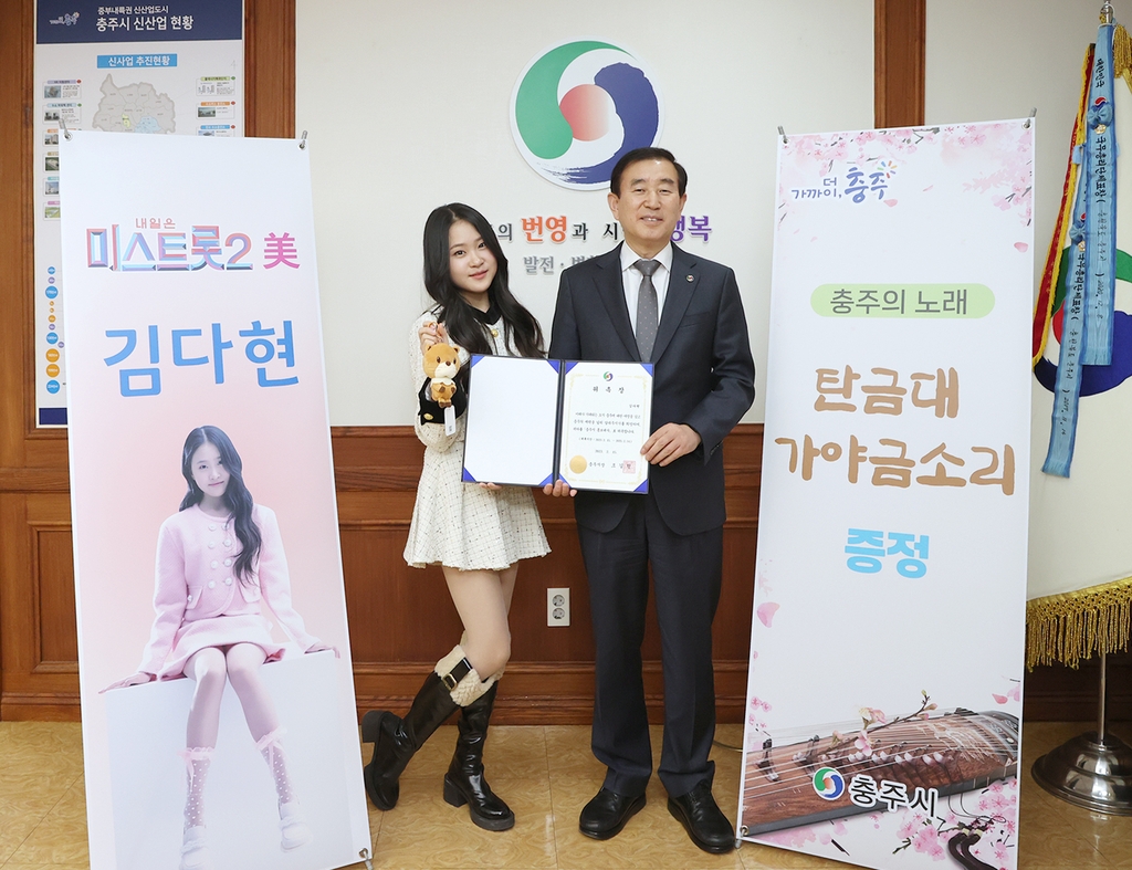 (충주=연합뉴스) 권정상 기자 = 충북 충주시는 소녀 트로트 가수 김다현을 홍보대사로 위촉했다고 16일 밝혔다.