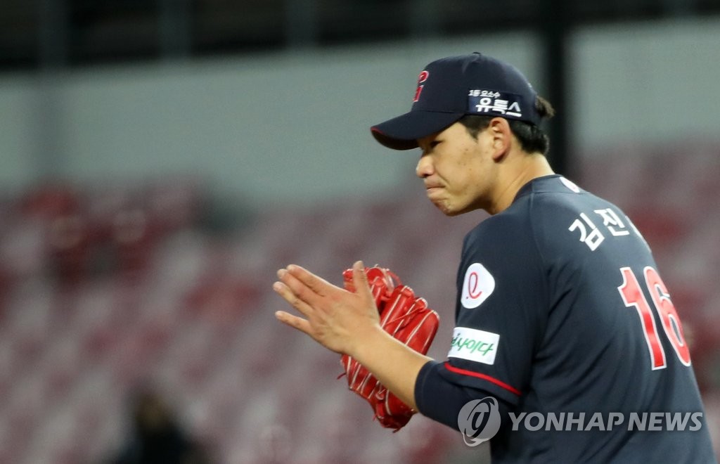 | ▲ In this file photo from April 15, 2021, Kim Jin-uk of the Lotte Giants pitches against the Kia Tigers in the bottom of the first inning of a Korea Baseball Organization regular season game at Gwangju-Kia Champions Field in Gwangju, 330 kilometers south of Seoul. (Yonhap) |