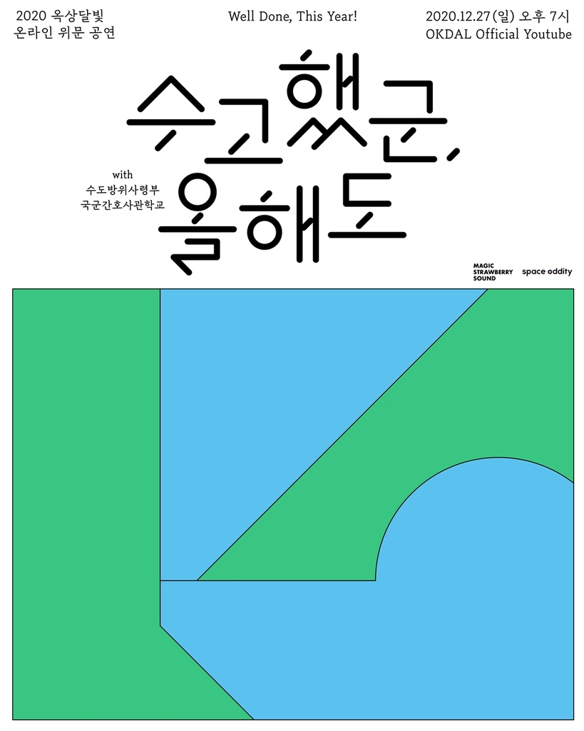 23일 소속사 매직스트로베리 사운드 등에 따르면 옥상달빛은 오는 27일 유튜브 라이브를 통해 수도방위사령부 장병들과 국군간호사관학교 생도 등을 위한 공연 '수고했군, 올해도'를 연다.