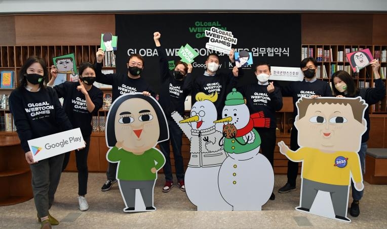 구글은 23일 네이버웹툰, 한국콘텐츠진흥원과 판교 네이버웹툰 사옥에서 이런 내용의 '글로벌 웹툰 게임스' 사업 양해각서(MOU)를 체결했다고 밝혔다.