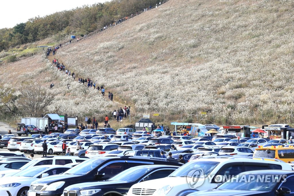 | ▲ 가을, 새별오름 (제주=연합뉴스) 2020년 11월 제주시 애월읍 새별오름을 찾은 탐방객들이 억새 사이를 걸으며 가을 정취를 만끽하고 있다. [연합뉴스 자료사진] |