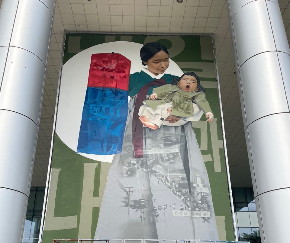 여인의 치마에는 50년 전 성남을, 아이의 저고리에는 현재와 미래의 성남을 담았다.