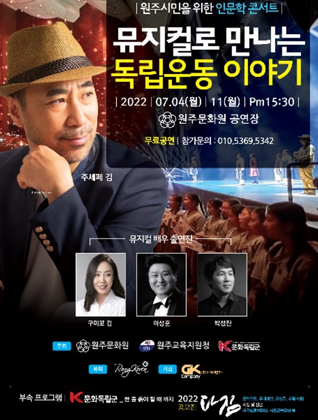 사단법인 K문화독립군과 예술단체 랑코리아는 내달 4일 원주문화원에서 지역 학생들을 대상으로 '뮤지컬로 만나는 독립운동 이야기'를 상연한다.