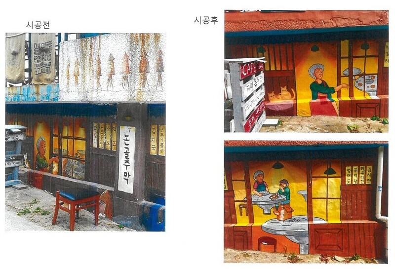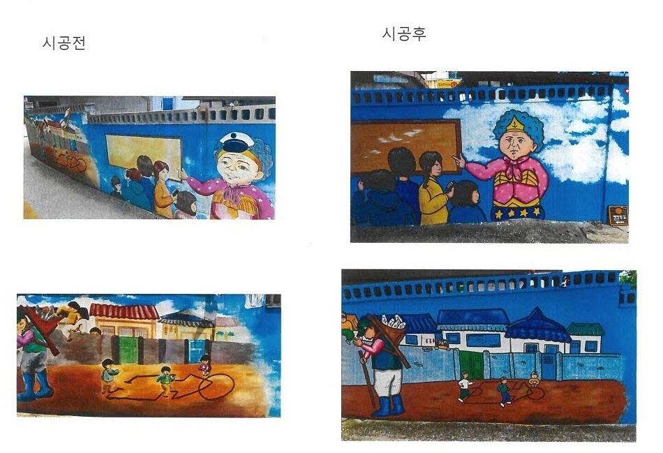 논골담길 대표 벽화는 부분 보수 또는 재도색으로 벽화를 유지하고, 훼손된 벽화는 시설보수 진행 후 색칠한다.