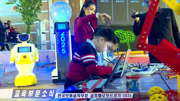 This photo captured from North Korea's Korean Central Television on Nov. 27, 2025, shows a robot competition among young students held at a college in Pyongyang from Nov. 18-24. (For Use Only in the Republic of Korea. No Redistribution) (Yonhap)