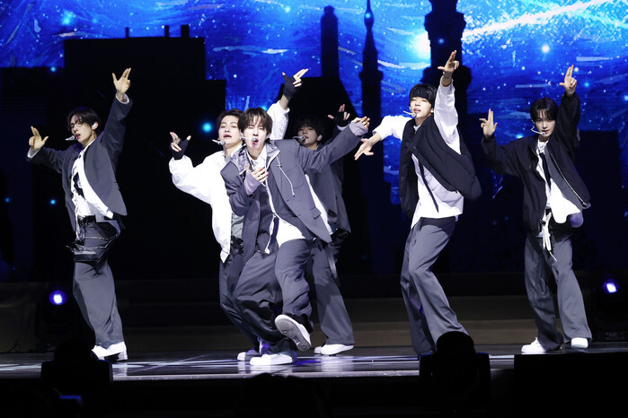 South Korean boy group TWS performs during a showcase in Seoul on Nov. 25, 2024, to promote the release of the group's first single album "Last Bell." (Yonhap)