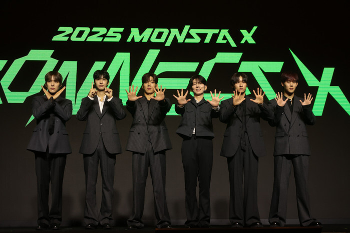 South Korean boy group Monsta X poses for a photo during a publicity event in Seoul on July 16, 2025, to mark the group's 10th anniversary of its debut. (Yonhap)