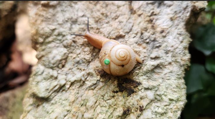 (신안=연합뉴스) 조근영 기자 = 전남 신안군은 국립생태원과 공동으로 인공 증식한 멸종위기 야생생물 Ⅱ급 참달팽이 20마리를 흑산면 하태도 원서식지에서 방사했다고 4일 밝혔다.