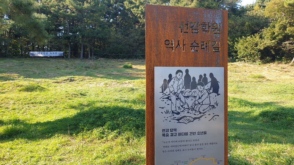'섬감 묘역 목숨 걸고 바다를 건넌 소년들'이라는 제목에 이어 "누군가 바다에 떠밀려 왔다고 하면서 단체로 데려갔는데 따라가 보니 몸이 퉁퉁 불은 채였어요. 죽은 아이를 실제로 보니 두려움이 컸어요"라는 증언이 담겼다.