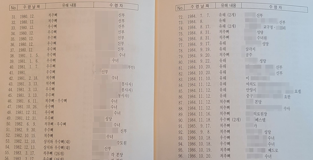 '유해현황 자료집' 확인…교회기관 외 신부·수녀·신자 등 개인에게도 분배