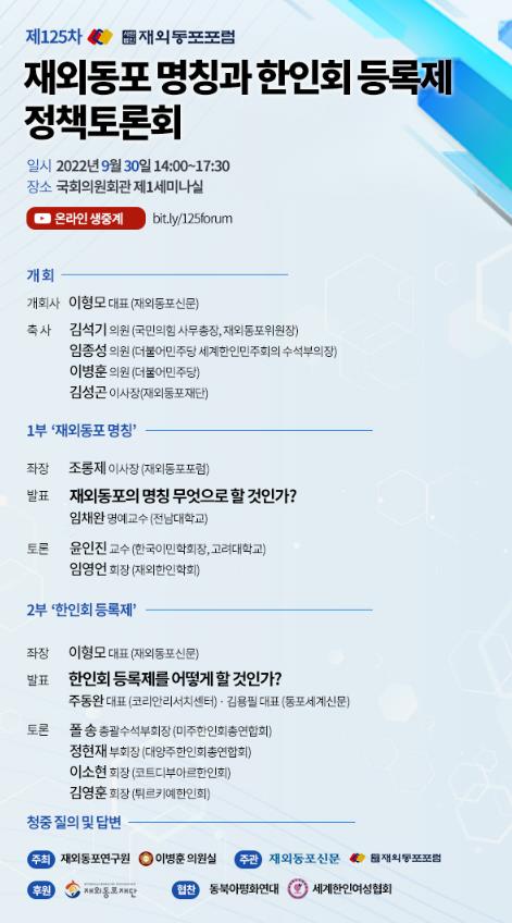 재외동포재단이 후원하며, 재외동포포럼 유튜브 채널(bit.ly/125forum)에서도 볼 수 있다.