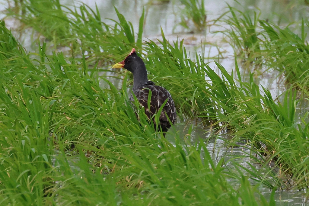 (서산=연합뉴스) 충남 서산 천수만에서 여름 철새인 천연기념물 뜸부기가 카메라에 포착됐다.