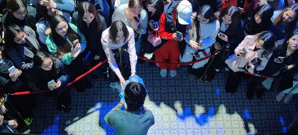 | ▲ 현지 팬으로부터 꽃다발을 받는 송원섭 (알마티=연합뉴스) 김상욱 통신원 = 17일(현지시간) 알마티에서 카자흐스탄 투어의 대미를 장식하는 피날레 공연 중 한 현지팬이 송원섭에게 꽃다발을 선물하고 있다. almatykim67@yna.co.kr 2023.3.17 |