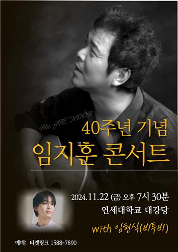 (서울=연합뉴스) 이태수 기자 = 포크 가수 임지훈이 오는 11월 22일 오후 7시 30분 서울 연세대학교 대강당에서 가수 데뷔 40주년을 기념하는 콘서트를 연다고 공연 기획사 비전컴퍼니가 30일 밝혔다.