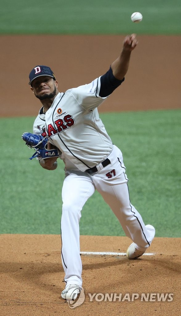 | ▲ In this file photo from Nov. 17, 2021, Ariel Miranda of the Doosan Bears pitches against the KT Wiz in the top of the first inning during Game 3 of the Korean Series at Gocheok Sky Dome in Seoul. (Yonhap) |