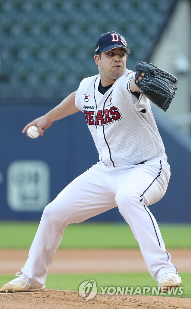 | ▲ In this file photo from July 28, 2022, Doosan Bears starter Robert Stock pitches against the Lotte Giants during the top of the first inning of a Korea Baseball Organization regular season game at Jamsil Baseball Stadium in Seoul. (Yonhap) |
