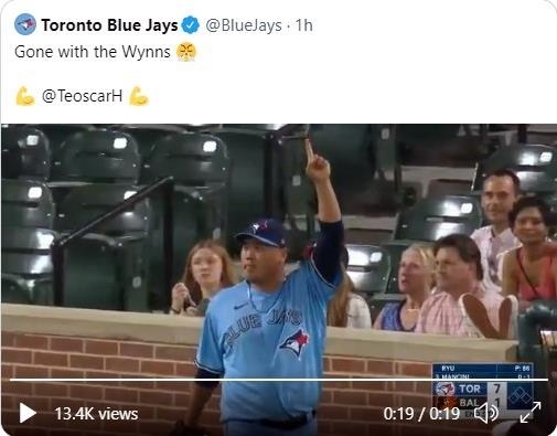 토론토 구단 공식 트위터는 영화 '바람과 함께 사라지다(Gone with the wind)' 제목을 비틀어 "Gone with the Wynns"라는 말로 에르난데스의 보살을 칭찬했다.