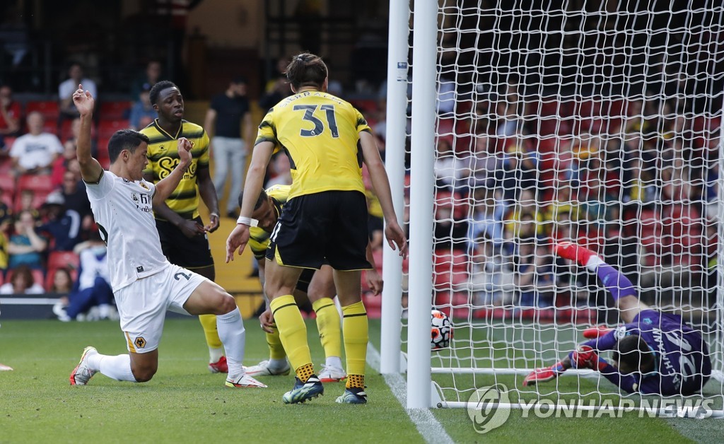 (서울=연합뉴스) 이영호 기자 = 잉글랜드 프로축구 프리미어리그(EPL) 데뷔전에서 데뷔골을 터트린 '황소' 황희찬(25·울버햄프턴)이 "꿈꾸던 무대에서 골"이라는 소감을 전했다.