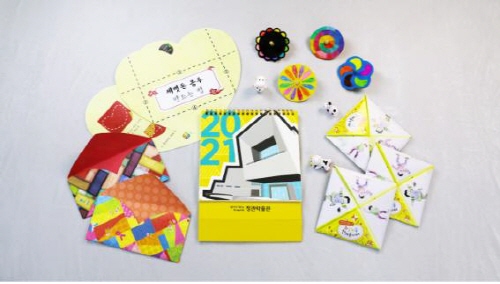 교육재료는 총 4가지로, '아기새 소리'가 담긴 유물 카드를 완성한 관람객에게는 ▲신축년 새해 달력을 제공하고 '소 인형'의 경우는 ▲세뱃돈 봉투(2월 11일) ▲손팽이(2월 12일) ▲딱지(2월 13일) 등 전통놀이 만들기 도구를 제공한다.