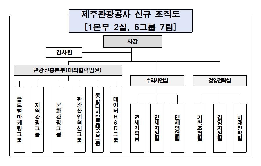 | ▲ 제주관광공사 신규조직도 [제주관광공사 제공, 재판매 및 DB 금지] |