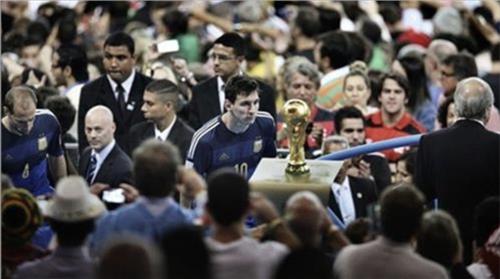 | ▲ 2014년 브라질 월드컵 결승전 뒤 트로피 바라보던 메시 [ESPN 트위터 캡처. 재판매 및 DB 금지] |
