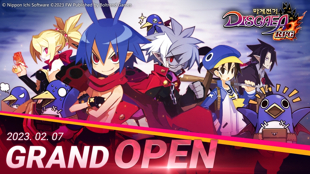 ▲ 볼트렌드게임즈는 일본 포워드웍스가 개발한 모바일 RPG '마계전기 디스가이아 RPG'를 국내 앱 마켓에 정식 출시했다고 밝혔다. '마계전기 디스가이아 RPG'는 올해로 20주년을 맞은 '마계전기 디스가이아' 시리즈를 기반으로 개발한 모바일 게임이다. 볼트렌드게임즈는 게임 출시를 맞아 오는 22일까지 정식 서비스 기념 이벤트를 진행한다고 밝혔다. (서울=연합뉴스)