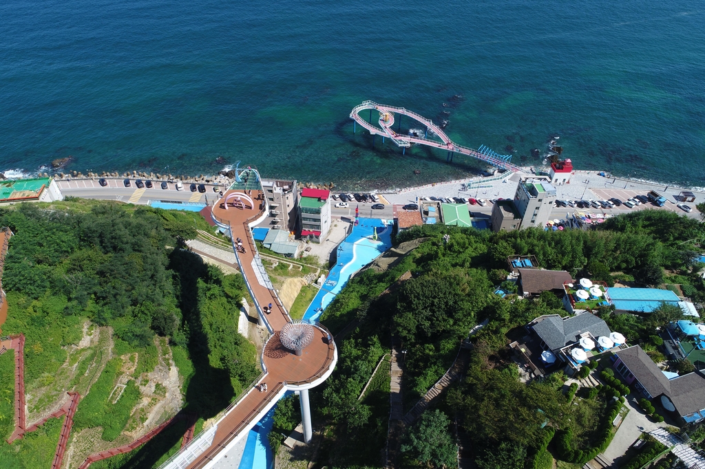 | ▲ 동해시 도째비골 스카이밸리 전경. 뒤로 바다에 조성된 것이 해랑전망대.[동해시 제공·재판매 및 DB 금지] |