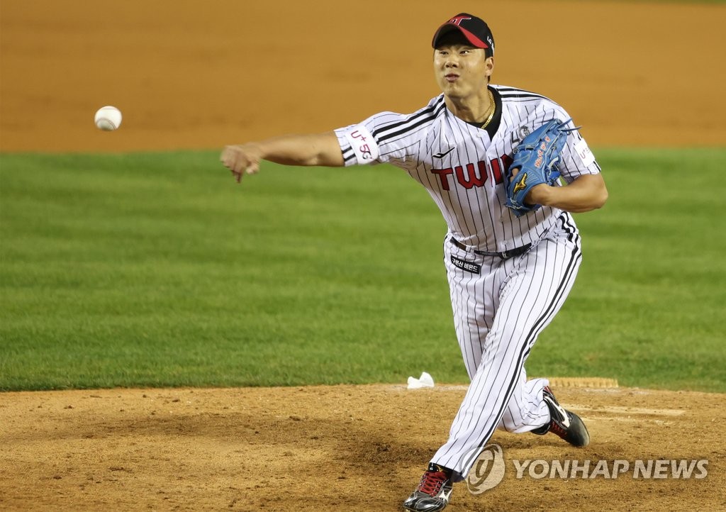 | ▲ 역투하는 LG 투수 정우영 (서울=연합뉴스) 이지은 기자 = 25일 서울 잠실야구장에서 열린 2022 프로야구 플레이오프 2차전 LG 트윈스와 키움 히어로즈의 경기. 6회초 마운드에 오른 LG 투수 정우영이 공을 던지고 있다. 2022.10.25 jieunlee@yna.co.kr |