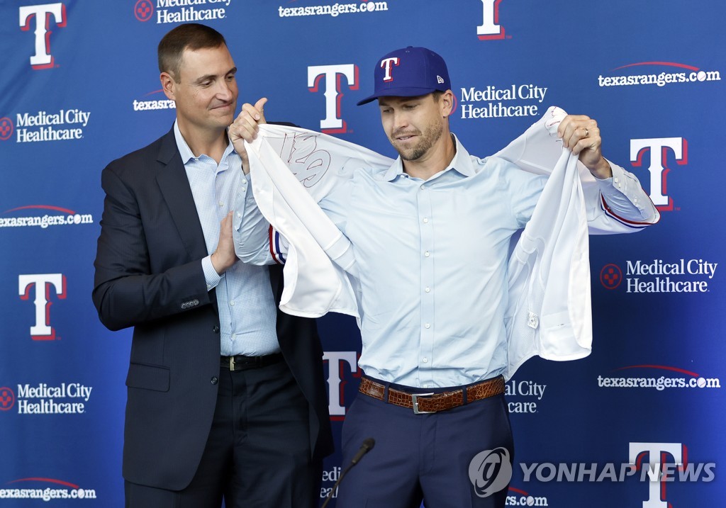 (서울=연합뉴스) 하남직 기자 = 제이컵 디그롬(34)이 미국프로야구 메이저리그(MLB) 텍사스 레인저스 유니폼을 입은 날 '건강'을 자신하며 월드시리즈 우승을 목표로 내세웠다.