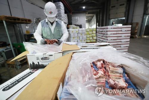 | ▲ This undated file photo shows an inspector checking imported beef. (Yonhap) |