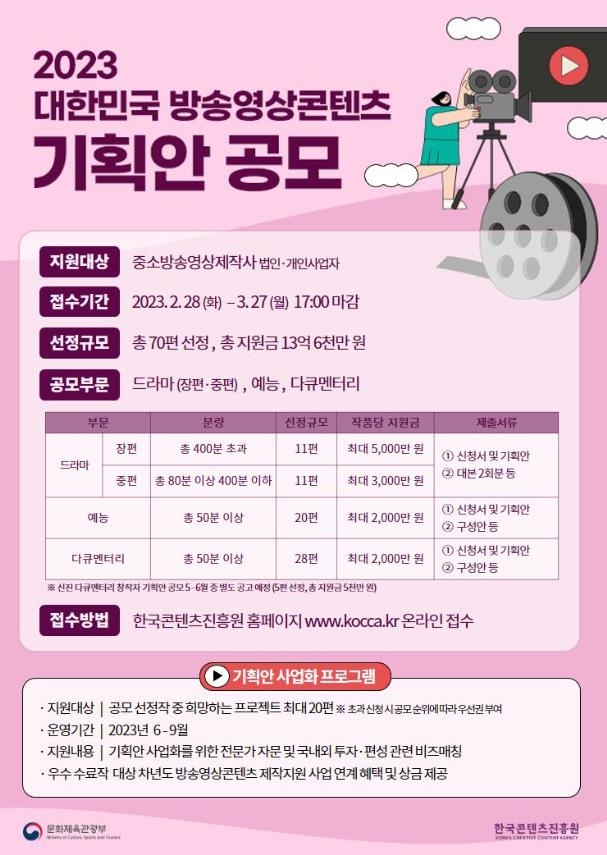 | ▲ '2023 대한민국 방송영상콘텐츠 기획안' 공모 포스터 [문화체육관광부 제공] |