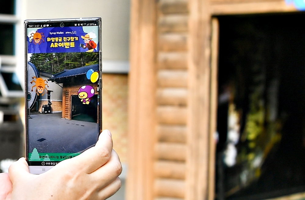 화암동굴 증강현실 존에서 자생 동·식물 캐릭터 수집 임무를 달성하면 경품 당첨 쿠폰을 주는 행사다.