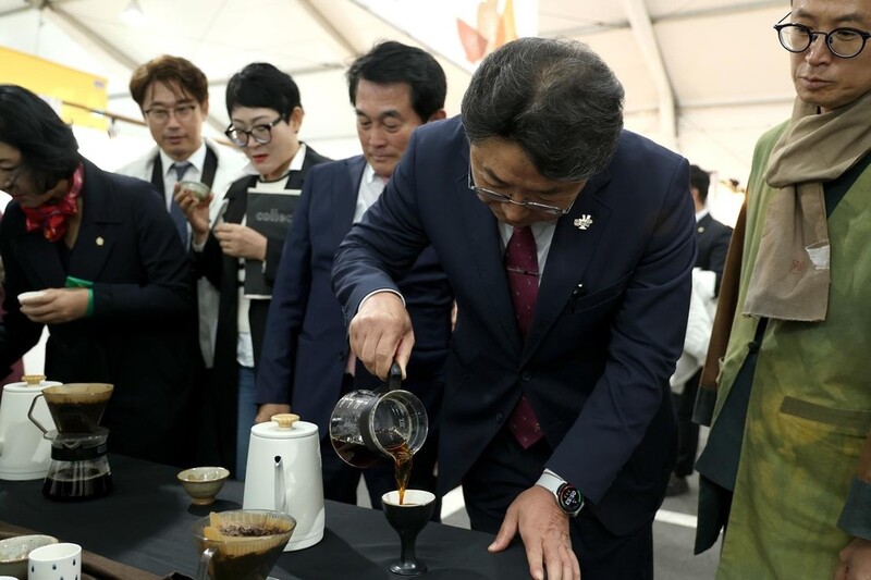 또 행사장에서는 커피로 유명한 강릉시가 준비한 최고의 다양한 시음 커피가 분청도자기에 담겨 관광객들에게 무료로 제공돼 인기를 끌었다.