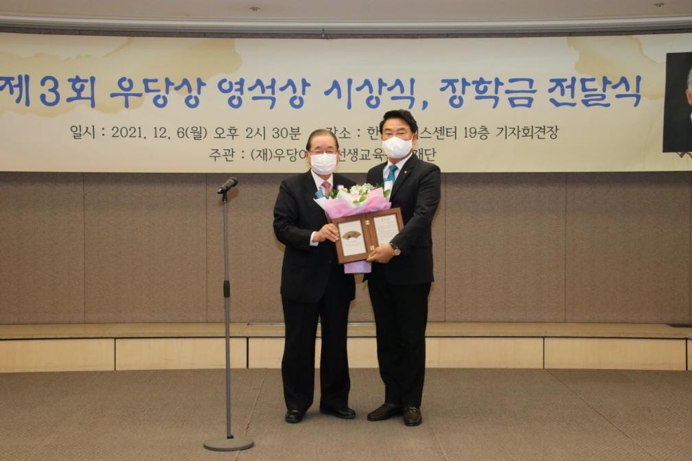| ▲ 대한주택건설협회 박재홍 회장(우측)이 제3회 영석상을 받고 있다. [대한주택건설협회 제공. 재판매 및 DB 금지] |