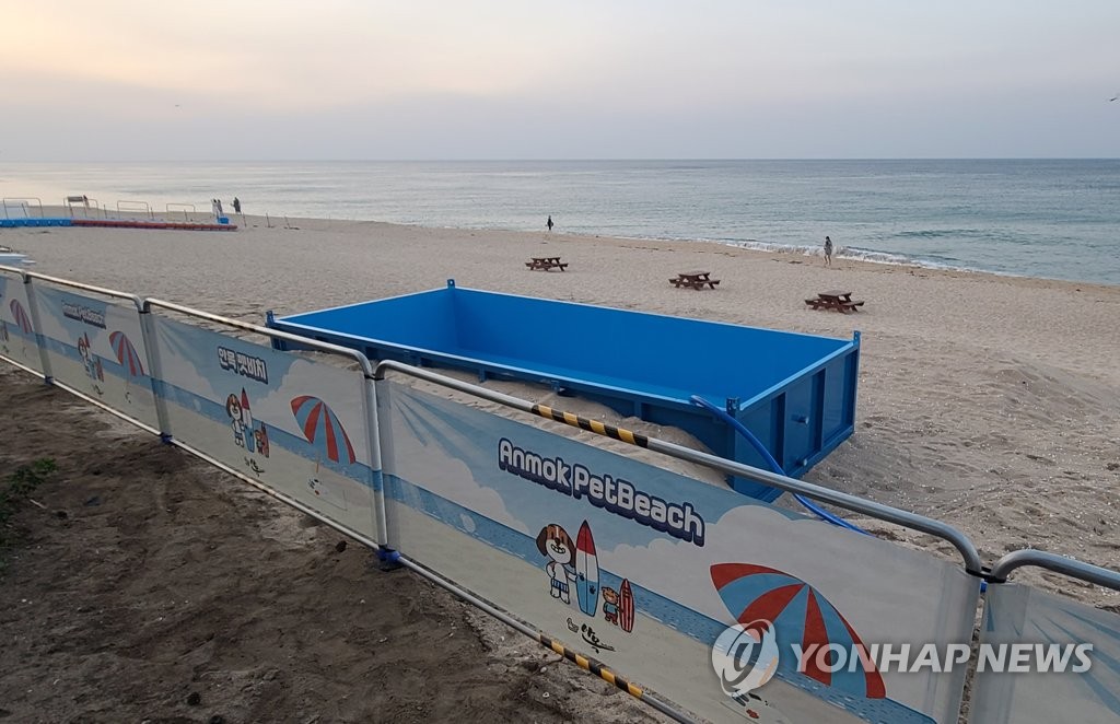 일반 피서객과의 접촉을 피하기 위해 해수욕장 일정 부분에 펜스를 치고 반려견이 물놀이를 즐길 수 있는 전용 풀장을 설치했다.