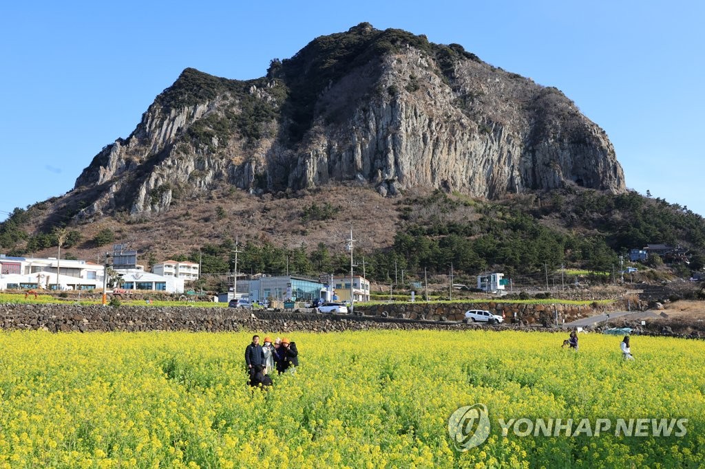 | ▲ 지금 제주는 유채꽃 천국 (서귀포=연합뉴스) 박지호 기자 = 8일 오전 제주 서귀포시 안덕면 사계리를 찾은 관광객이 유채꽃밭에서 산방산을 배경 삼아 사진을 찍고 있다. 2023.2.8 jihopark@yna.co.kr |
